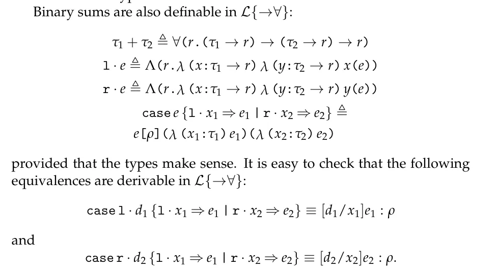 sum type 也是容易定义的,只需要看出来 sum type 可以看作一个函数链,其中只有一个函数是能被调的